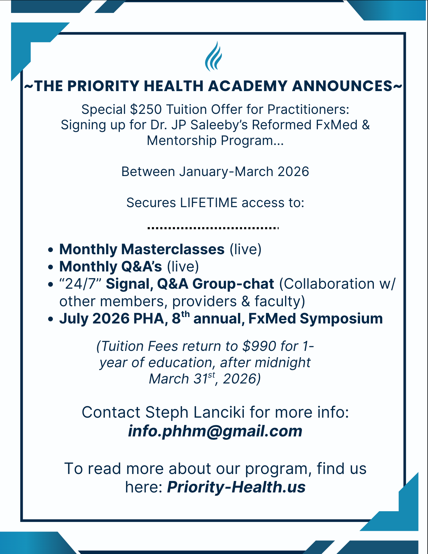 A taste of what is to come at our 2026 8th Annual Priority Health Academy Symposium. This is an audio recording of the PHA Masterclass for March 2026. This Free access sets the tone.